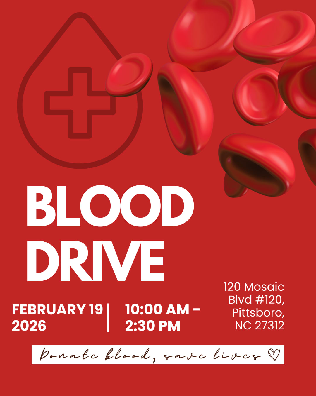 Come donate blood with the Red Cross here at 79 West in Pittsboro on February 19th!
