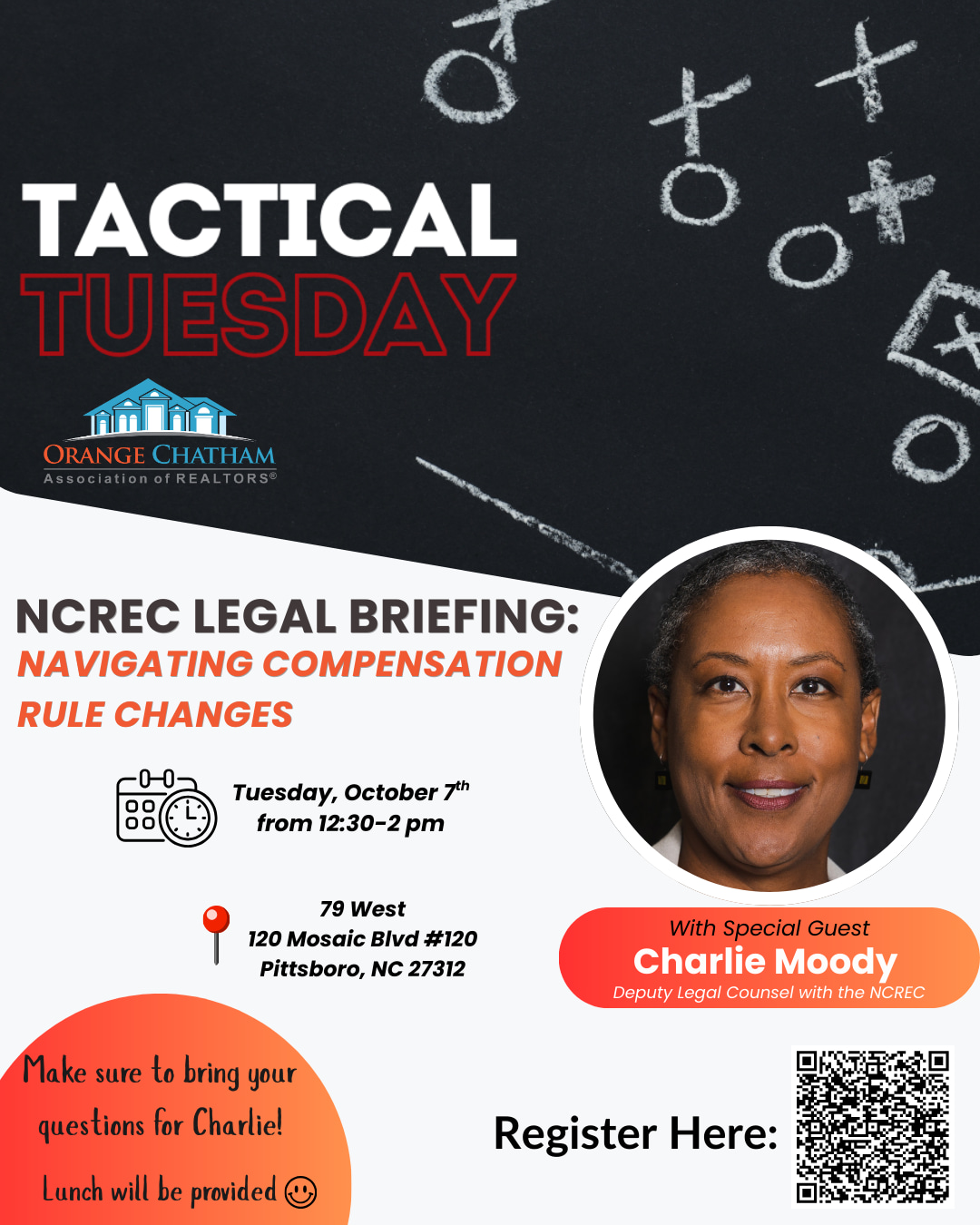 Our October Tactical Tuesday topic will be NCREC Legal Briefing - Navigating Compensation Rule Changes with special guest Deputy Legal Counsel Charlie Moody from the NCREC! Bring lots of questions for her.. this will be a VERY informative conversation!