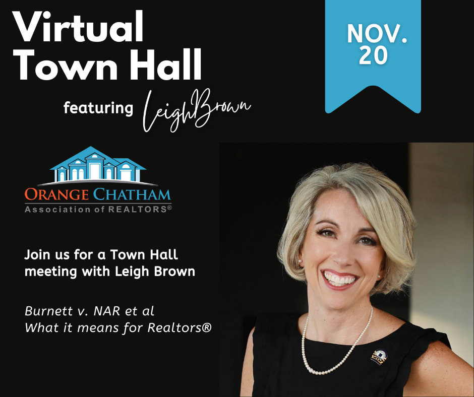 We urge you to join OCHAR and surrounding associations on November 20 for a virtual Town Hall meeting with Leigh Brown, who will provide insights into the lawsuit and what it means for Realtors®.